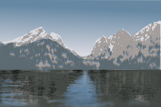 I am quite happy with Inkscape's ability to ripple water and blur gradients in producing paintings with reflections. I learned a lot about how careful one must be with the snow crest filter.